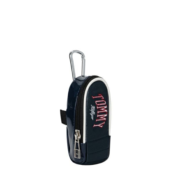 商品説明 エナメル&革風PU生地を使用した高級感溢れるスタイリッシュなスポーティーデザインのボールケースです。正面のラウンドファスナーポケットを開けると、ボールを3個収納することができます。サイドにはティーを刺すことができるスペースがあります。背面側には、金属ナスカンとホック式ベルトループが付いており、簡単にバッグやベルトに取り付けることができます。