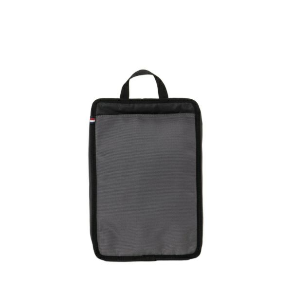 持ち手が付いており、持ち運びがしやすいシューズケースです。軽量でありながら、裏側には大きなスリットポケットがあります。