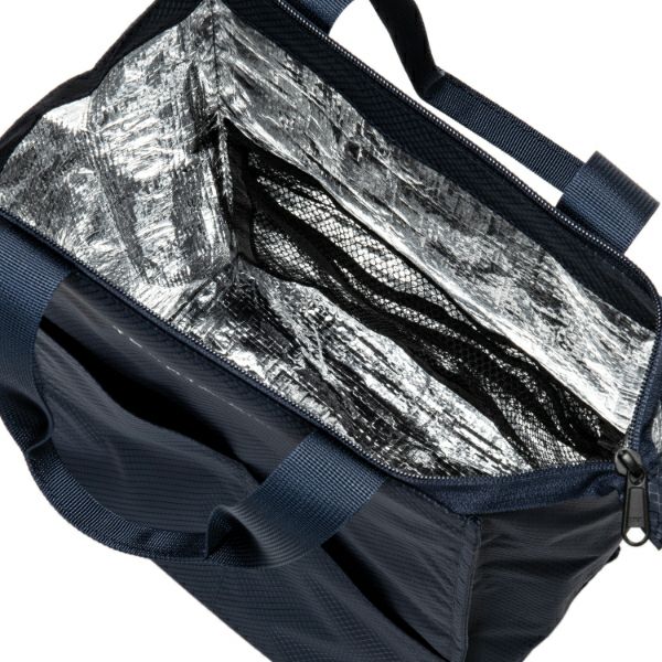 商品説明 スリムなデザインの縦型保冷バッグ。2Lペットボトル2本を収納でき、猛暑でも安心です。一般的なラウンドバッグと同じ幅なので、カートに積み込むことも可能です。外側にはポケットが3つ、内部にはメッシュポケットが2つあります。