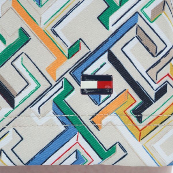 上品な印象のポリエステルツイルを使用し、全面にプリントしたハンドタッチのモノグラムプリントが印象的です。スタンダードなボックスシルエット、ウエスト後ろのゴム使いで快適な履き心地です。