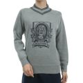 商品説明 ヴィンテージ感溢れるデザインのエンブレムロゴVネックセーター。 首に沿ったシャープなVネックが特徴で、ジャカードで表現した掠れたエンブレムが目を引きます。 中肉のセーターは肌寒い季節に最適です。