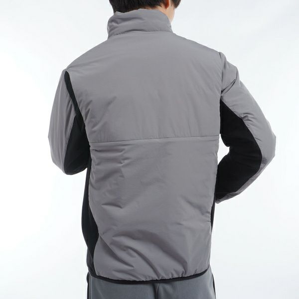 商品説明 保温性に優れたハイブリッド中綿ジャケット。 運動量が多い脇部分には適度な張り感があり、ストレッチ性の高いウォームニット素材を使用しています。 背中部分にはストレッチ素材を内側に使用し、アクションプリーツ仕様。 スイングの妨げになりません。寒さの厳しい季節に最適な一着です。