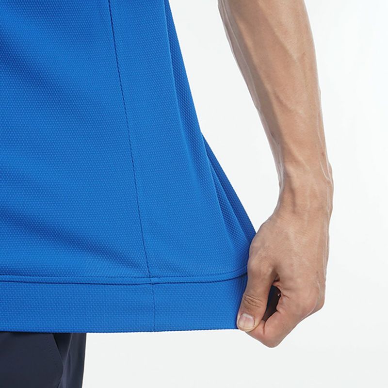 商品説明 吸水速乾性とUVカット機能を備えた、カラーブロック半袖モックネックシャツ。 凹凸感のある生地が身体から離れることで、風が通りやすく、汗によるべたつきを軽減します。また、吸水速乾機能により、汗を素早く吸収し、快適な着心地を提供します。 ゆったりとしたシルエットは、裾部分が折り返し仕様になっており、シャツアウトでの着用もしやすいデザインです。メーカー品番:THMA505