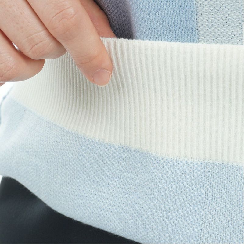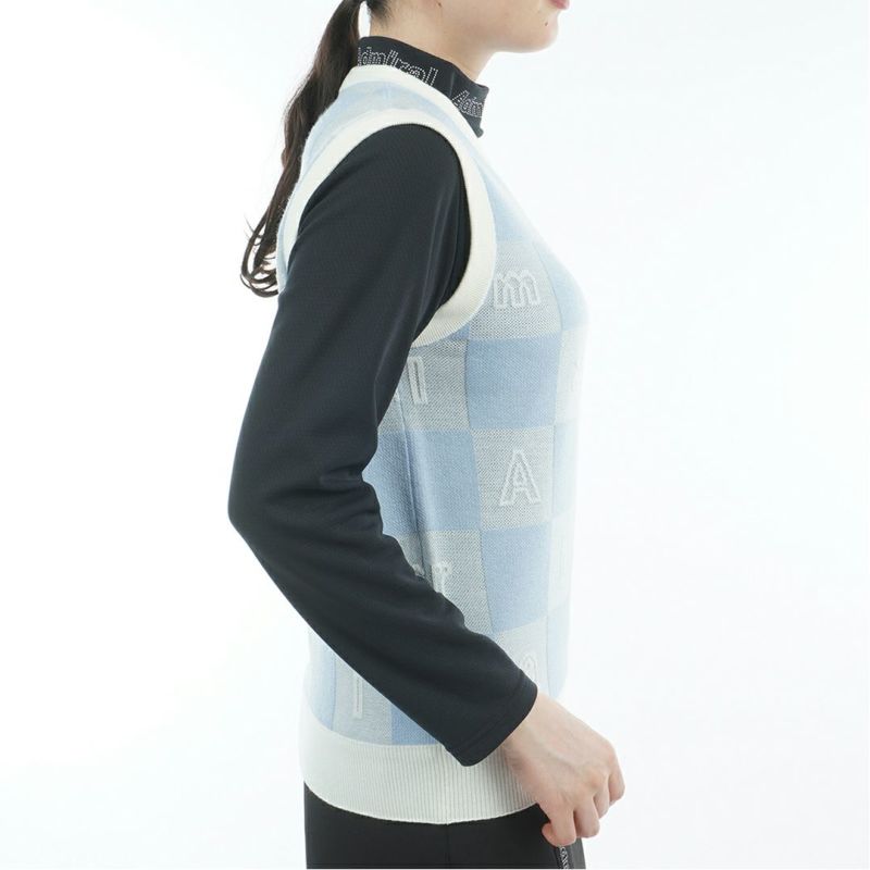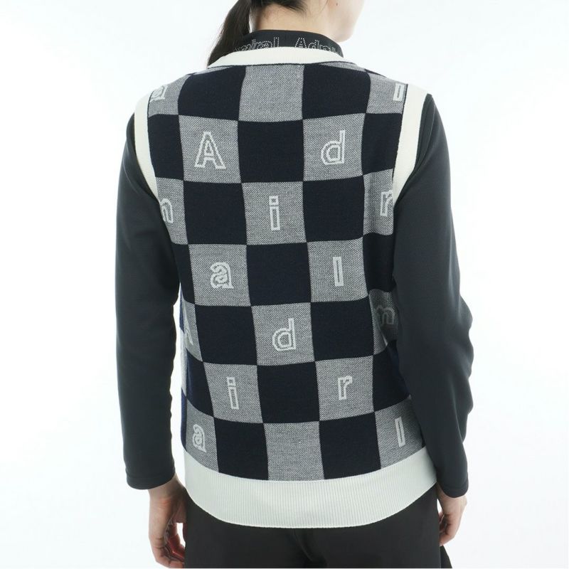 チェッカーフラッグとロゴイニシャルモチーフを凹凸で表現したジャカード編みのニットベスト。通気性と軽量性を高めるため、極細のスパークナイロン糸を組み合わせています。静電気の発生を抑えるリンキング糸を使用し、快適な着用感を実現しています。編み地にはファンシーヤーンを採用し、やわらかな印象に仕上げました。起毛感の少ないライトな質感で、季節の変わり目やレイヤードスタイルに適しています。裾には控えめなシルバーラメのロゴ刺繍を配しています。