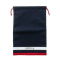定番のシューズ巾着。大きいサイズでマルチに使用可能で、高級感漂う艶のあるツイル生地を使用しています。さりげないアクセントカラーが特徴です。