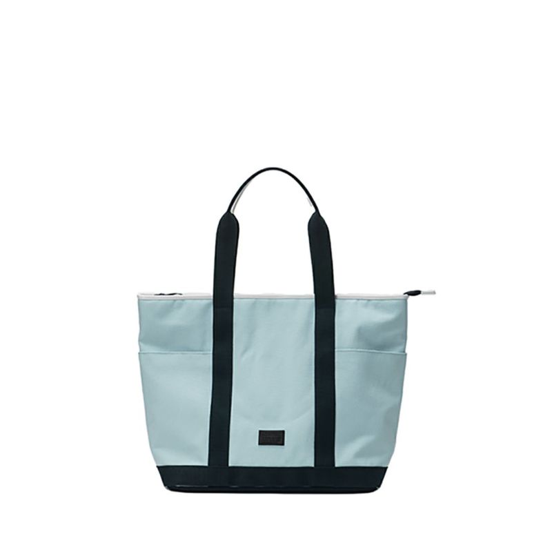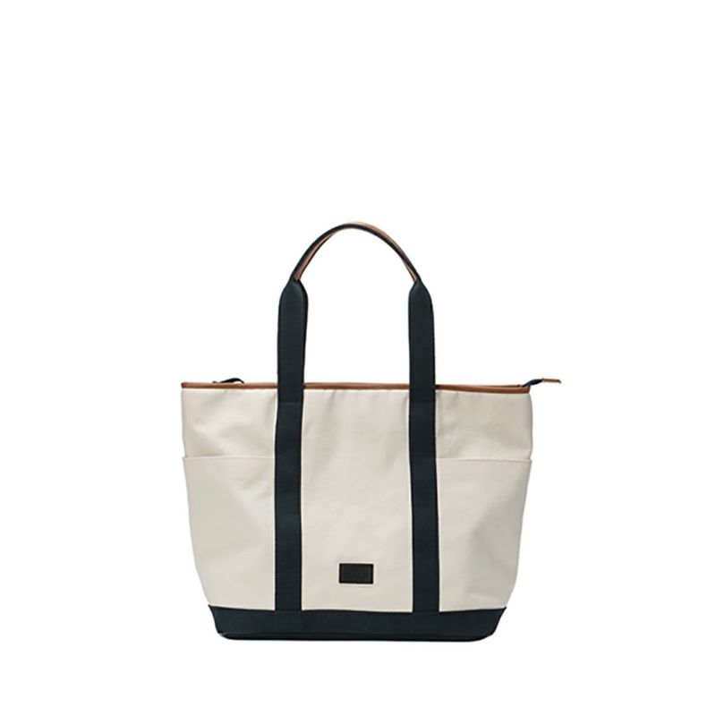カジュアルな帆布調の生地を使用したトートバッグ。シンプルな配色で男女問わず持ちやすく、大きめの外側ポケットも使いやすい特徴があります。内側にはポケットが2つ装備されています。