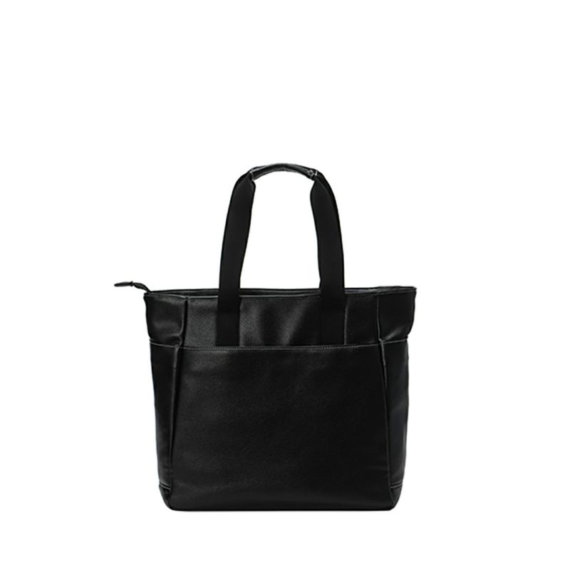 商品説明 高級感のある深めのエンボス合皮を使用したトートバッグ。ゴルフシーンに映えるトリコロールカラーと、タウンユースに最適なブラックカラーが用意されています。前後には外側ポケットがあり、内側にもポケットが装備されており、充実した収納が特徴です。