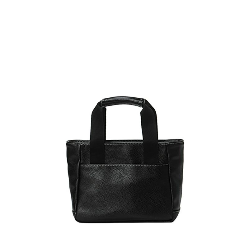 商品説明 高級感のある深めのエンボス合皮を使用したラウンドバッグ。ゴルフシーンに映えるトリコロールカラーと、タウンユースに最適なブラックカラーがあります。前後には外側にポケットが付いており、内側にもポケットが装備されており、充実した収納を備えています。