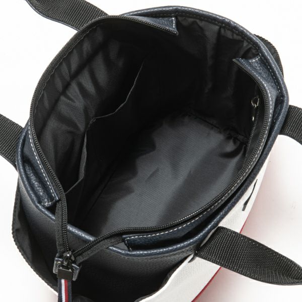 商品説明 内側にファスナーポケット、2個の仕切りポケットを備えたラウンドバッグ。外側にも便利な2個のアウターポケット付きで、収納力も高いバッグです。高級感のあるレザー調PU生地を使用し、カラス対策も万全な天マチファスナー付きです。