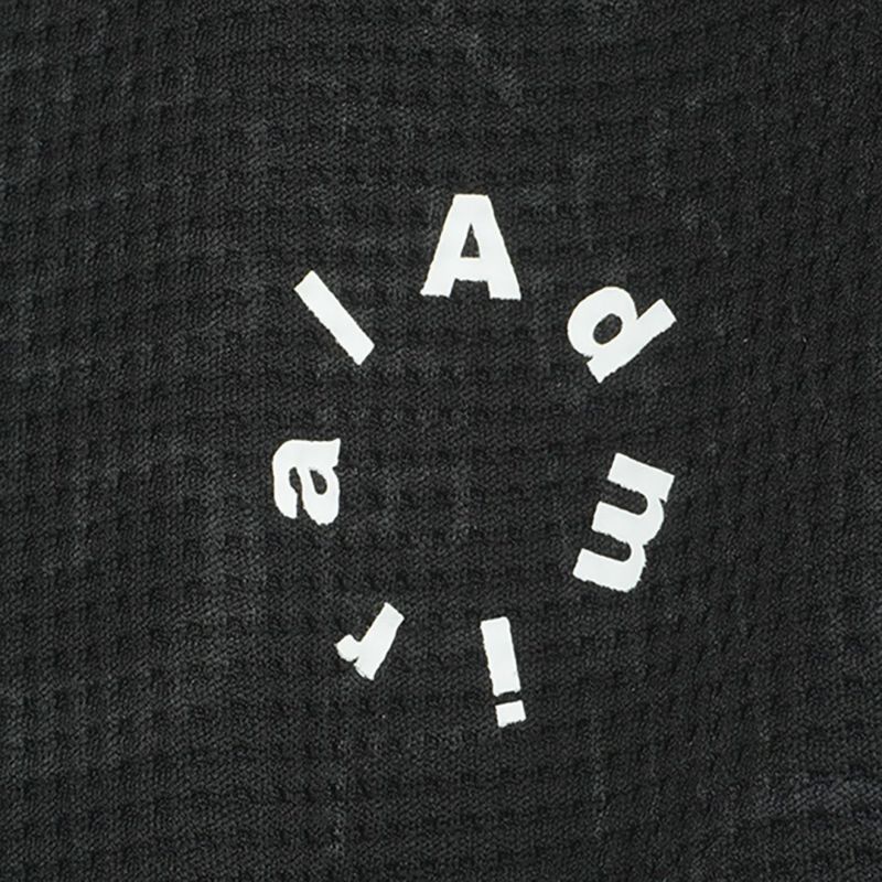 エンボス加工で施されたジオメトリックなロゴパターンとスポーティーな配色切り替えがポイントです。