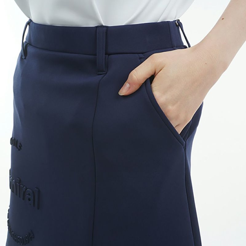 商品説明 弾力性と滑らかなテクスチャーが特徴のダンボール素材を使用したプルオンスカート。 吸水速乾とストレッチ機能を備え、快適な着用感を提供します。ベルトループが付いており、距離計をベルトにセットすることができます。 フロントはイミテーションラップ仕様で、風によるめくれを防ぎます。エンボスロゴが大人っぽく、クリーンな印象を与えるデザインです。