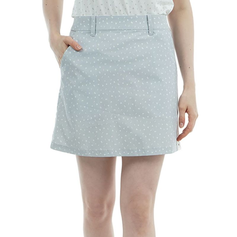 商品説明 撥水性とストレッチ性を備えた軽量タフタ素材を使用したスカート。 ブランドイニシャルをランダムに散りばめたダンシングロゴプリントが特徴的で、楽しいデザインとなっています。 裾の配色やロゴ、バックプリーツがデザインのポイントです。ウエストベルトの裏側には吸水速乾メッシュ素材を使用しており、腰回りを快適に保ちます。