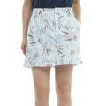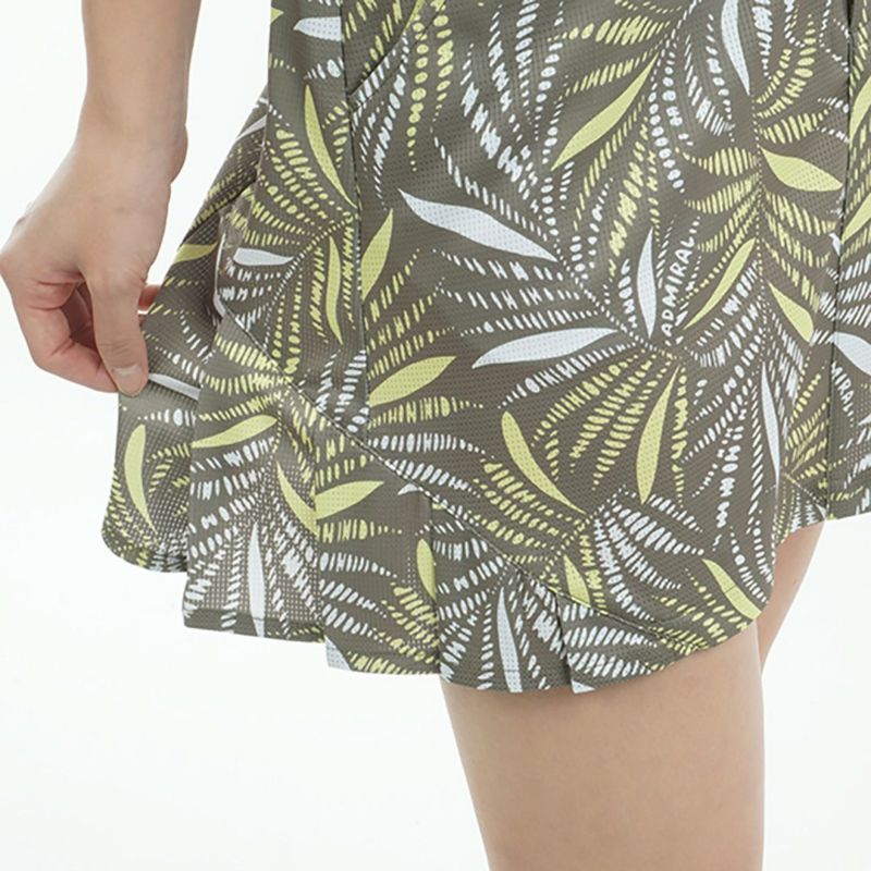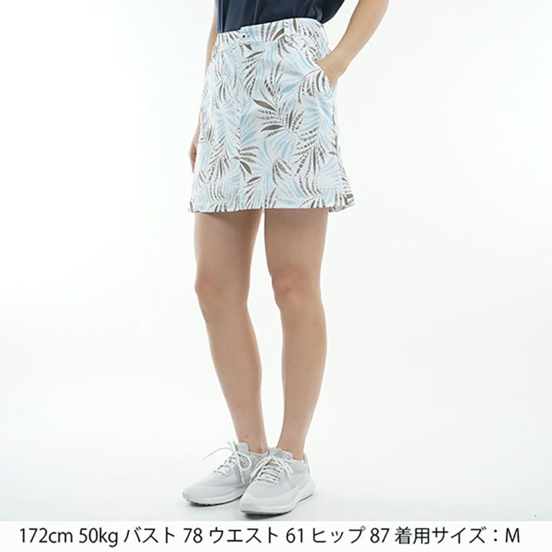 商品説明 ライトメッシュを使用し、リーフ柄のプリントがリゾート感を演出しているスカート。 カットソーの快適な着心地と軽さを兼ね備えています。甘くなりすぎないサイドプリーツ。ウエストはバックゴムシャーリングで締め付けを軽減、ベルト裏には吸水速乾メッシュを使用し、腰回りを快適に保ってくれます。 ポロシャツと合わせてセットアップコーデもお勧めです。
