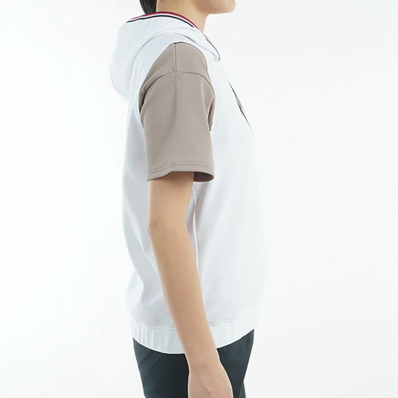 商品説明 フード付きでスポーティーなデザインが特徴の、バックロゴフーディーベスト。 温度調整にも適しており、コーディネートの幅を広げるアイテムとして活躍します。立体的でゆとりのあるアームホールデザインにより、スイングの邪魔をせず、快適な動きをサポートします。さらに、撥水機能を備えており、急な天候の変化にも対応します。UVカット機能も搭載しており、紫外線から肌を守ります。 トレンド感のあるバックプリントがアクセントで、重ね着を楽しめるおしゃれな印象を与えます。メーカー品番:THLA502※商品画像は半袖モックシャツとのレイヤード型コーディネイトとなっておりますが、こちらの商品はベストのみとなります。