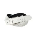 エンボス合皮に細かなパンチングのデザインが通気性を確保。通年使用可能で機能性に優れたベルトです。