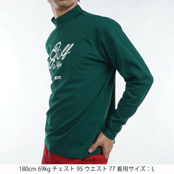 商品説明 ストレッチ性の高い天竺素材を使用した、ロングスリーブモックネックシャツ。吸水速乾性に優れ、快適な着用感を提供します。フロントに施されたゴルフロゴが、シャツにスポーツ感をプラスし、Tシャツ感覚で着用できるグラフィックプリントです。1枚で着用するだけでなく、セーターのインナーとしても活躍する、汎用性の高いモックネックシャツです。