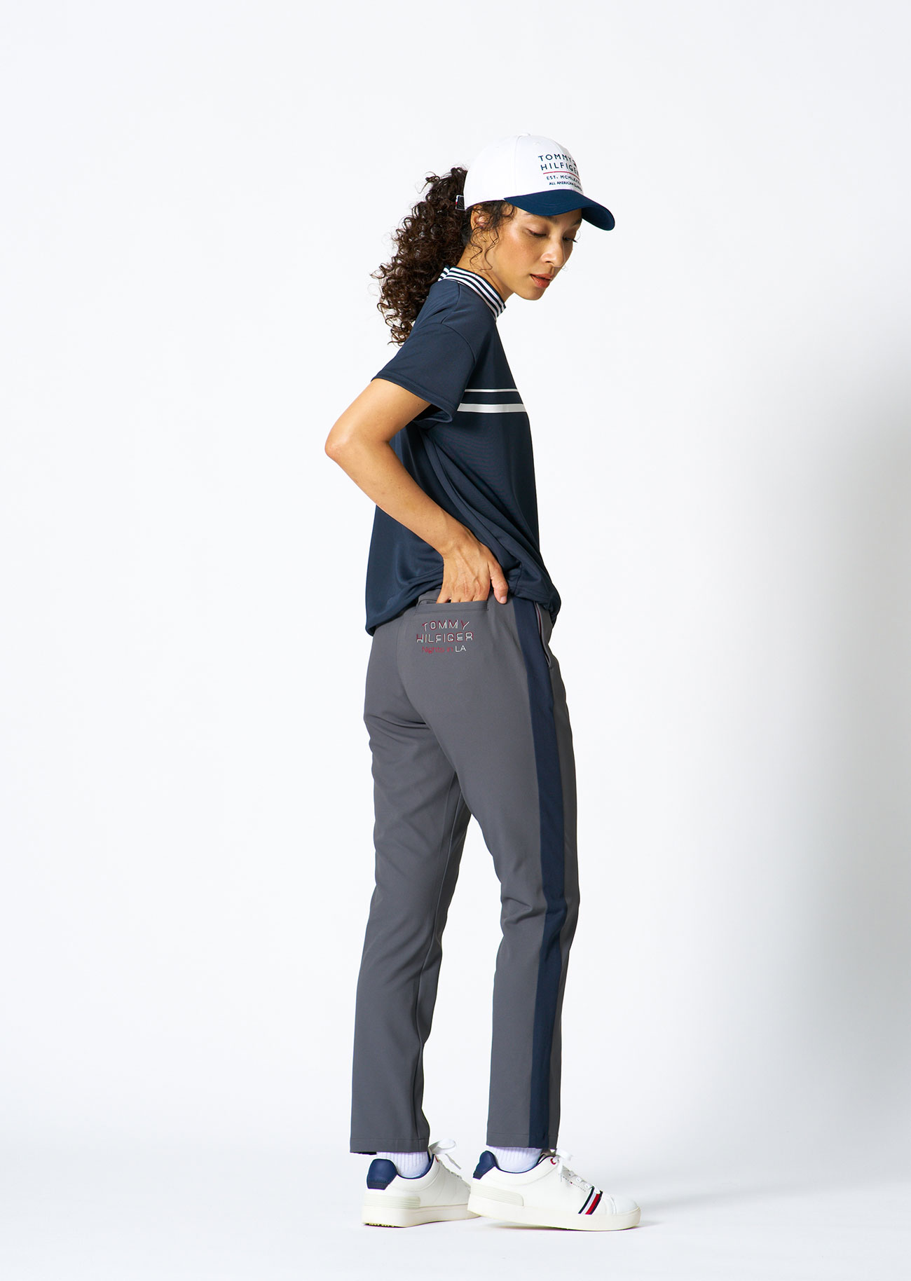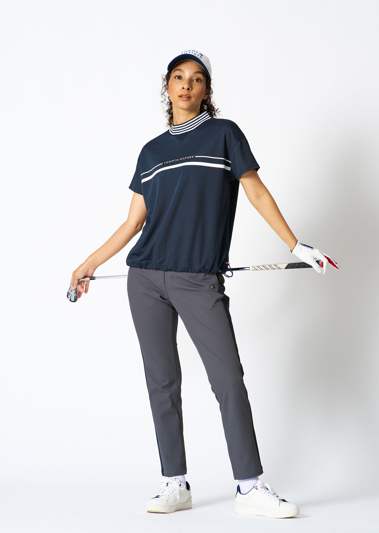 接触冷感素材のモックネックシャツに、遮熱パンツを合わせたコーディネート。ゆったりトップスと細身パンツのコントラストで、洗練された大人バランスに。