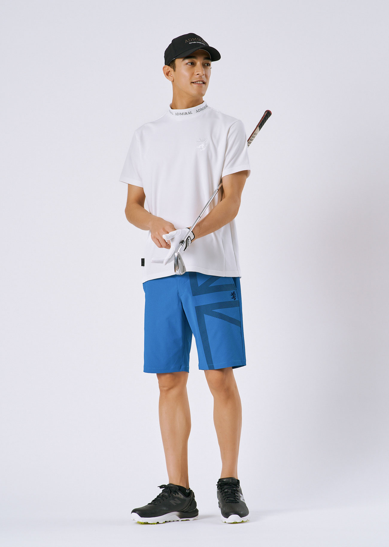 快適な着心地が続くカラタッチシャツに、透けにくいストレッチパンツを合わせたコーディネート。ボトムスは接触冷感のある素材に、大胆に彩られたユニオンジャックプリントが特徴。