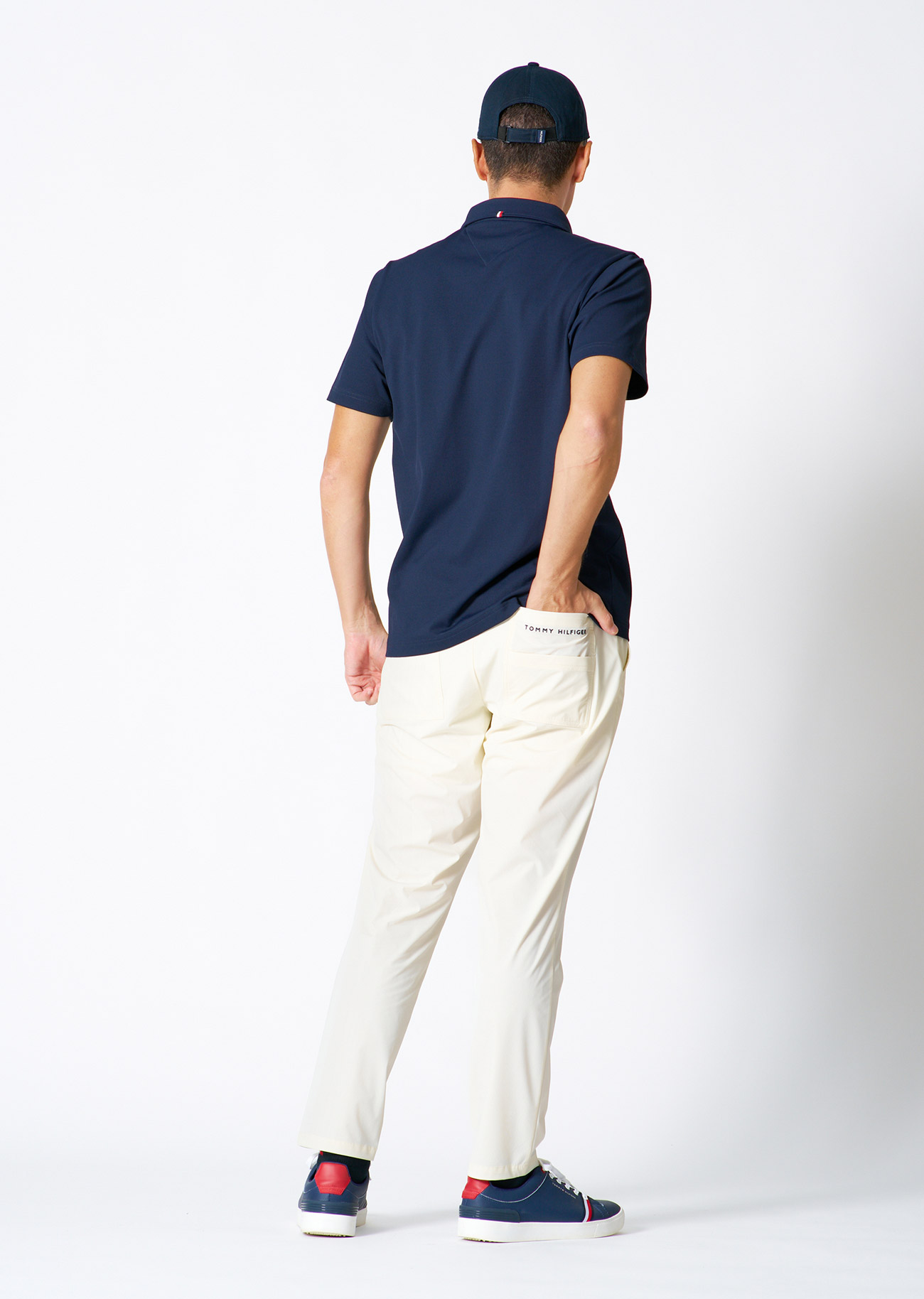 快適性に優れた速乾ワッフル素材のシャツに、軽量で清涼感のあるパンツのコーディネート。王道の配色でまとめた、品よく決まるスタイル。