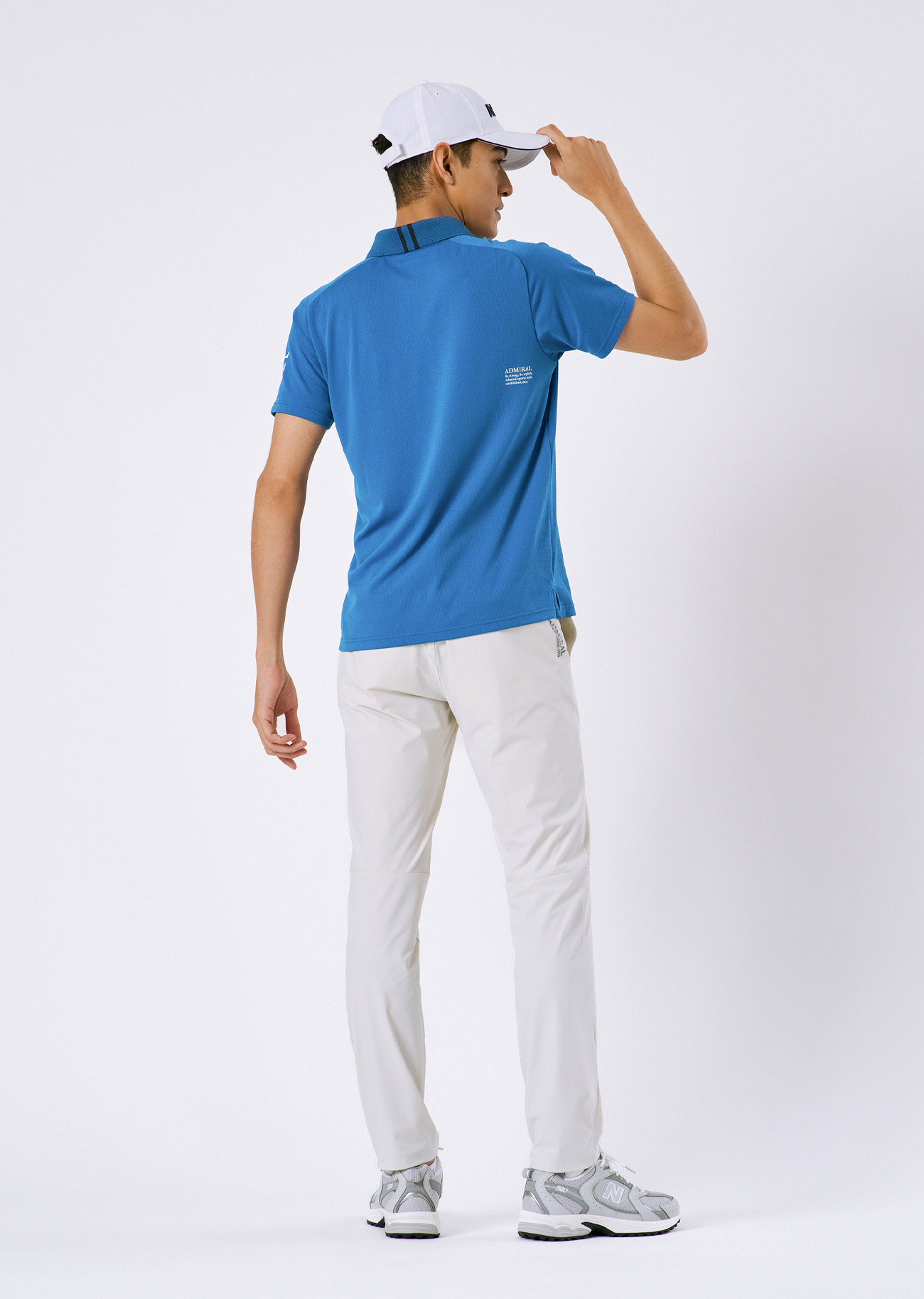 快適な着心地が続くカラタッチに接触冷感機能を加え、さらに進化した新素材「カラタッチプラス」のシャツのコーディネート。冷感性の高いパンツを合わせ、スポーティーな印象に。