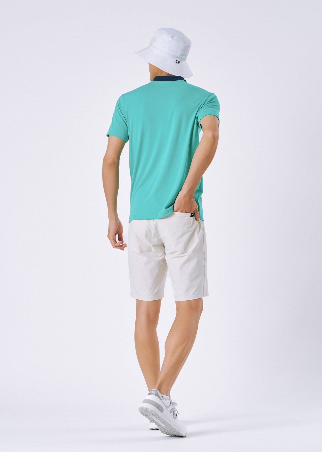 快適な着心地が続くカラタッチに接触冷感機能を加え、さらに進化した新素材「カラタッチプラス」のシャツのコーディネート。冷感性の高いパンツを合わせ、素材もカラーも爽やかな着こなしに。