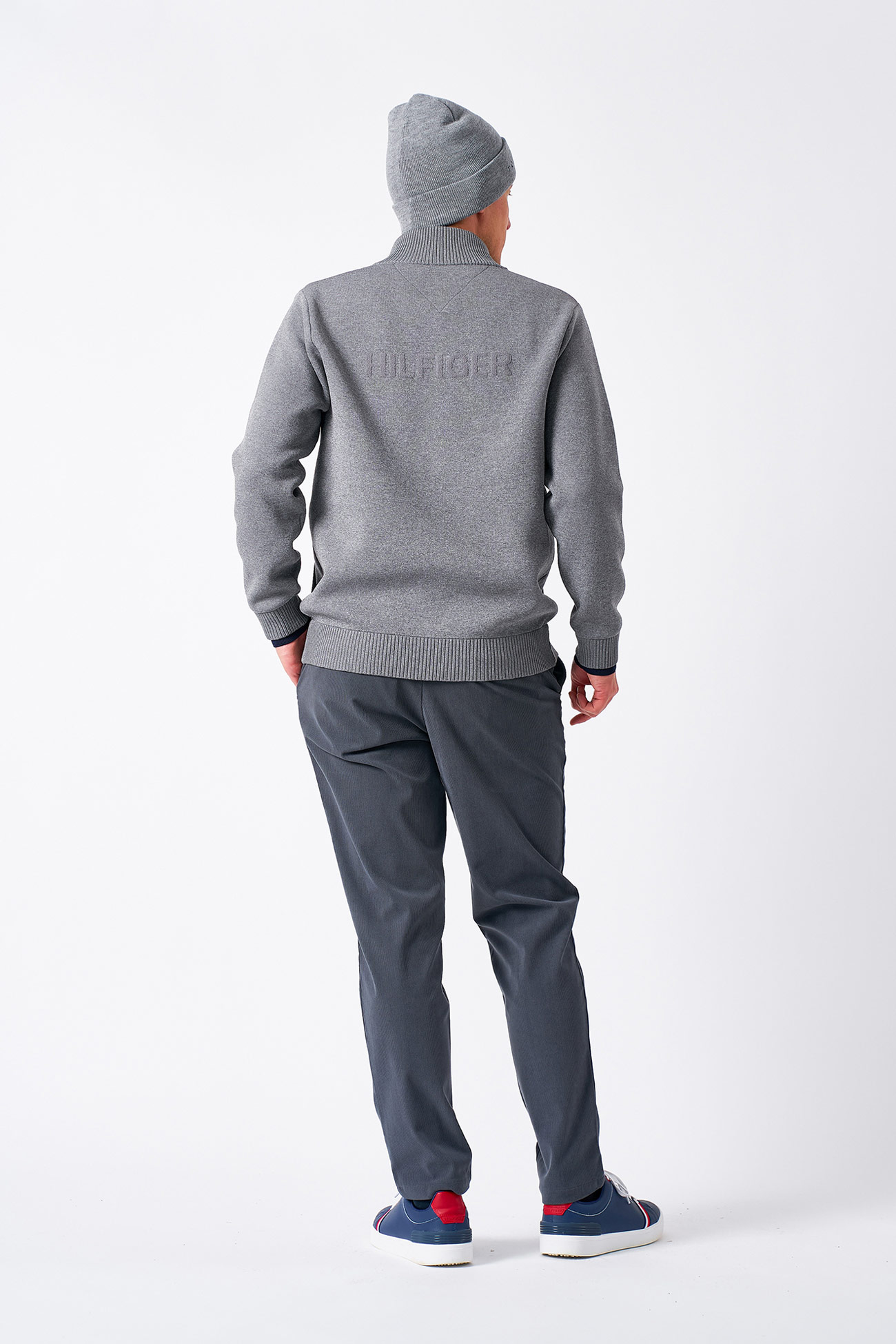 肌触りが良く、膨らみと温かみのあるモールニットのジャケットと、高ストレッチのコーデュロイパンツのコーディネート。インナーの長袖シャツが爽やかさをプラスし、上品な印象に。