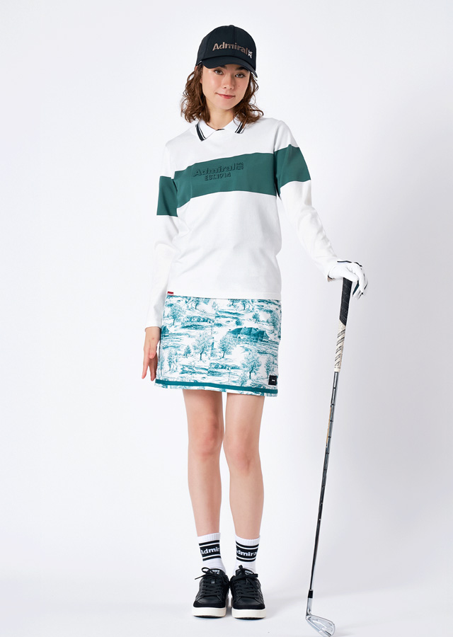 国産ジャカード生地のシャツに、程よいゆとりのあるウィンドジャケットをレイヤードし、360度ストレッチの効くキュロットパンツを合わせたコーディネート。爽やかで清潔感のある着こなしに。