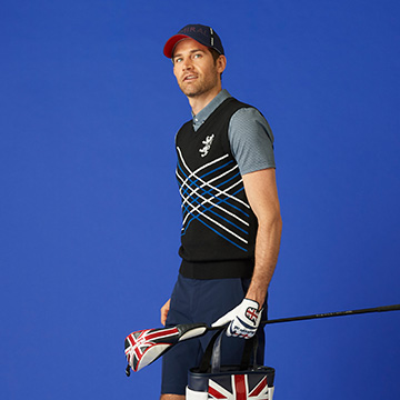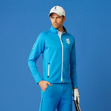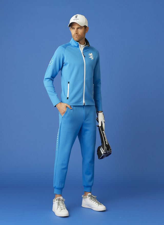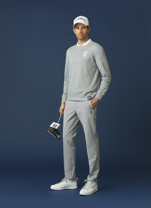 デビュー当時からの強さを彷彿させる、レッドを基調とした10周年コーデ。ポロシャツは胸の大きなロゴを復刻し、新たに襟裏の刺繍と右袖に記念ロゴをデザイン。定番コーデも素材とデザインの進化で新鮮に。