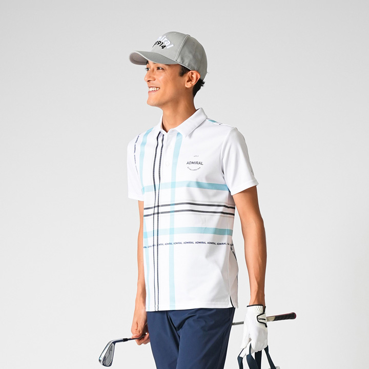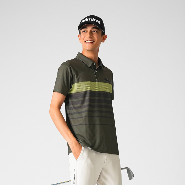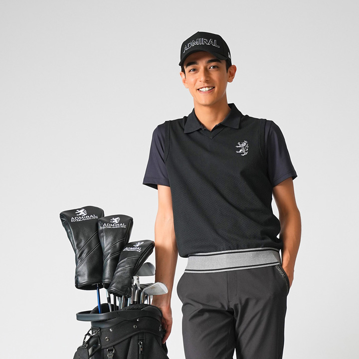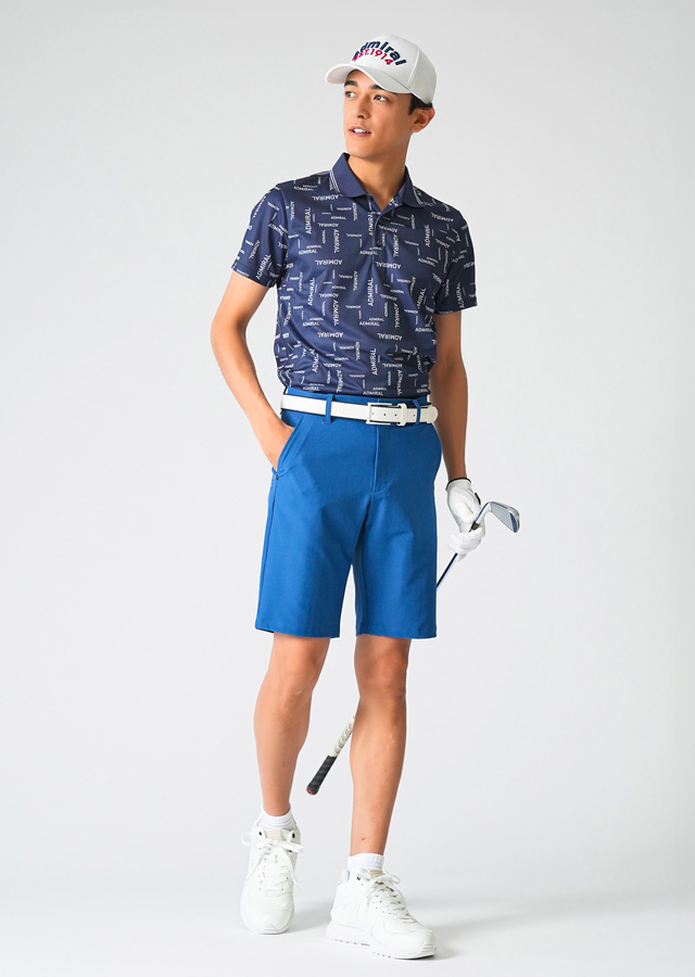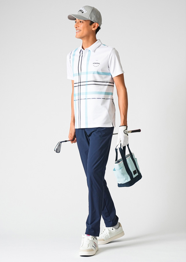 ブランドを象徴するポロシャツと、4WAYストレッチパンツのコーディネート。毎シーズン人気のポロシャツに今季から4Lサイズを追加し、豊富なサイズ展開も魅力の1つに。誰でも真似しやすい王道スタイル。