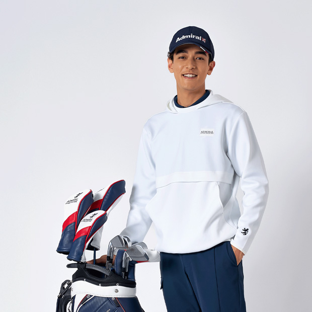 ストレッチ性&もっちりとした弾力感が特長のフーディーと、凹凸感のあるワッフルストレッチ生地を使用したパンツのコーディネート。程よくゆるく、きちんと感のある着こなしに。