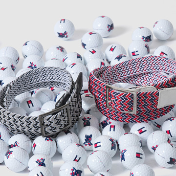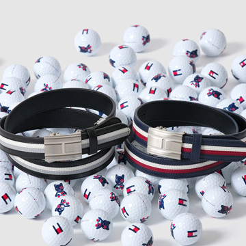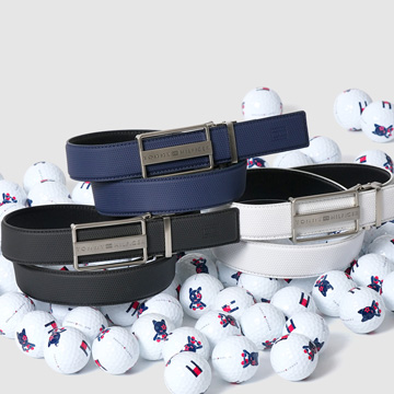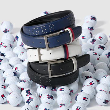 合皮にパンチングでロゴを表現したベルトコレクション。ベルトループにシグネチャーストライプをアクセントに取り入れ、スポーティながらファッション性もあるデザイン。