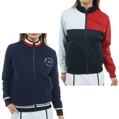 エンブレム刺繍とストライプが映える表面と、大胆な配色切り替えの裏面。二つの表情を楽しめるジャケットに、ロゴ入りシャツと裏フリース起毛パンツを合わせたスタイル。