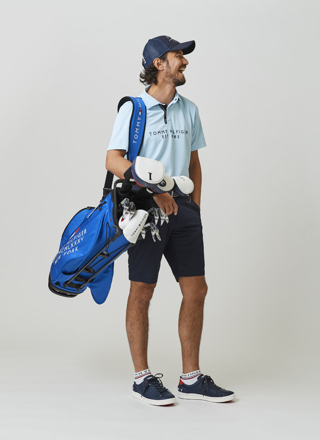 動きやすい&カッコいい、ハイブリッド素材で魅せる春コーデ。TOMMYらしいデザインのジャケットは、木陰にいるような涼しい着心地。カラバリ豊富なモックシャツと相性の良いショートパンツを合わせて。