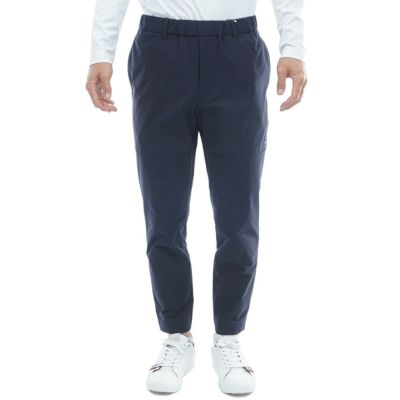 国産ジャカード生地のシャツと、優れた防風性と軽量感が特長のスウェットのレイヤードコーデ。ストレッチ素材に撥水加工を施したパンツは、タウンユースにもオススメ。
