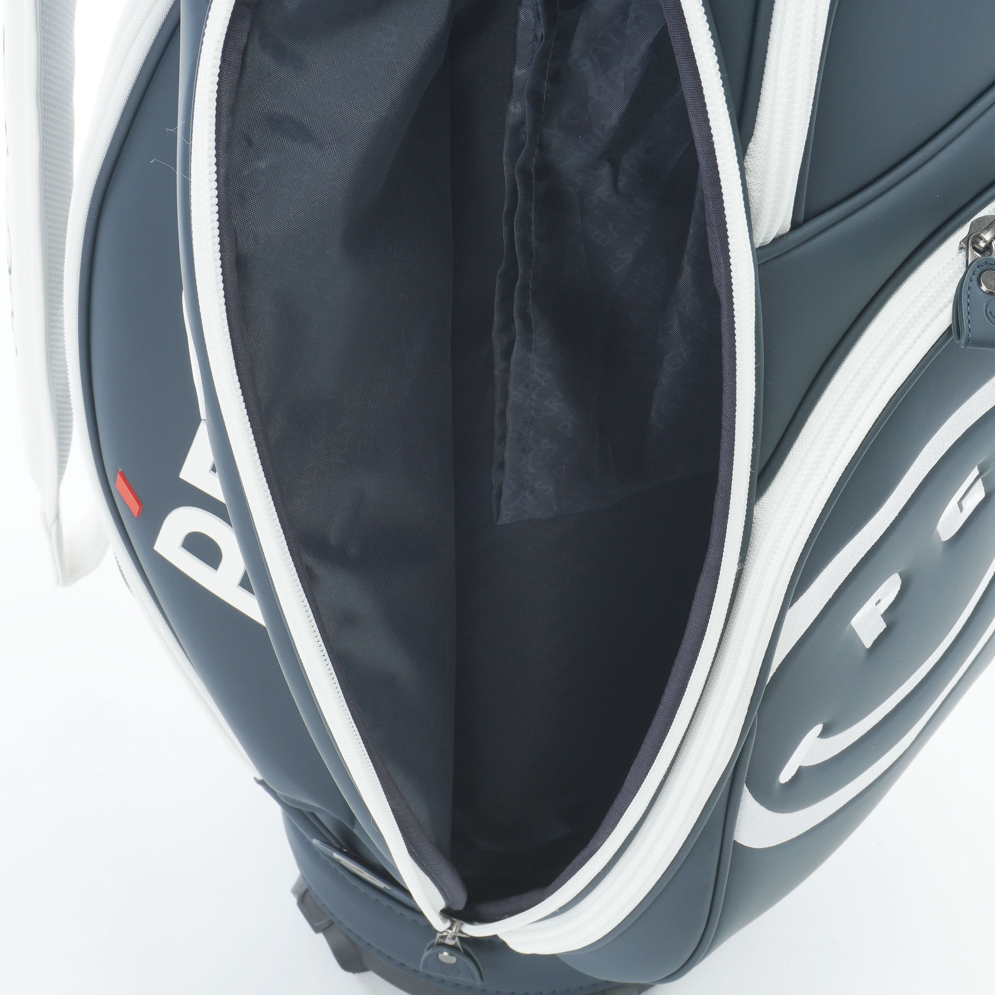 PEARLY GATESから、 当店オリジナルモデルのキャディバッグが登場。 ボディにはしっとりとなめらかな質感と 優れた耐久性を兼ね備えた マットフェイクレザーを採用しました。